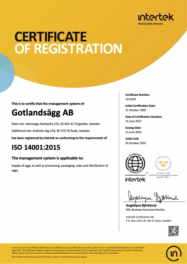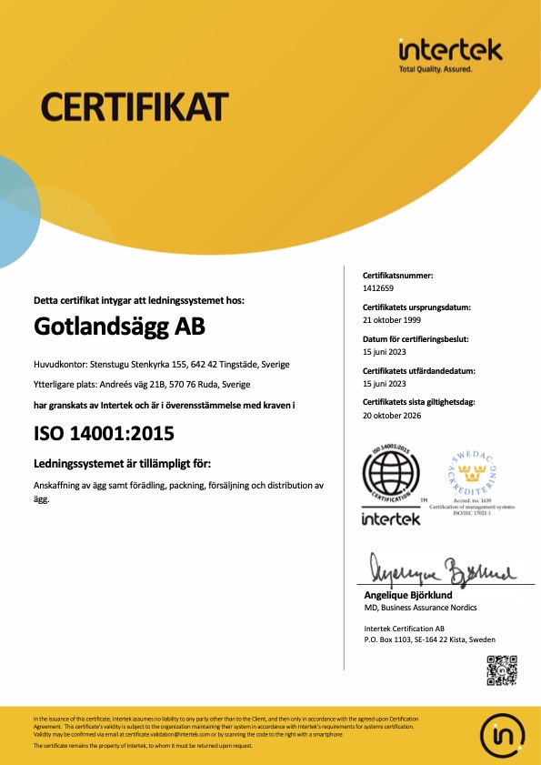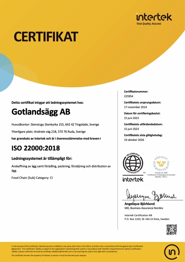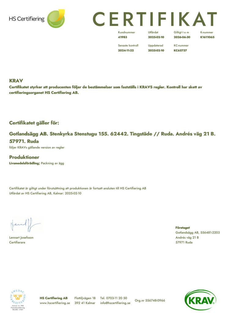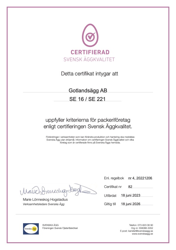 Sveriges första ISO-certifierade äggpackeri sedan 1999.